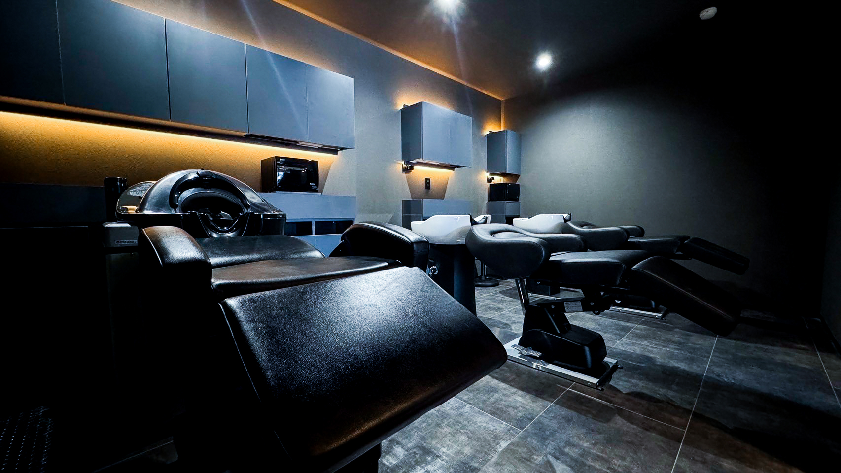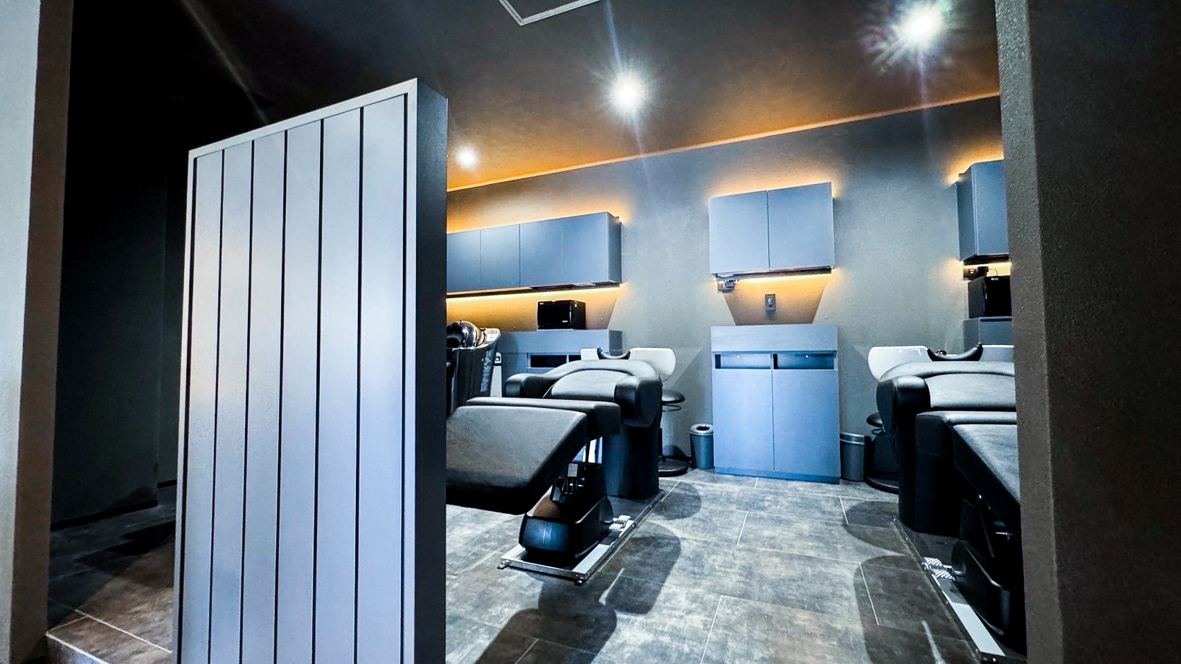 シンプルかつモダンなデザインと柔らかな間接照明とリラックスした空間で施術いたします。